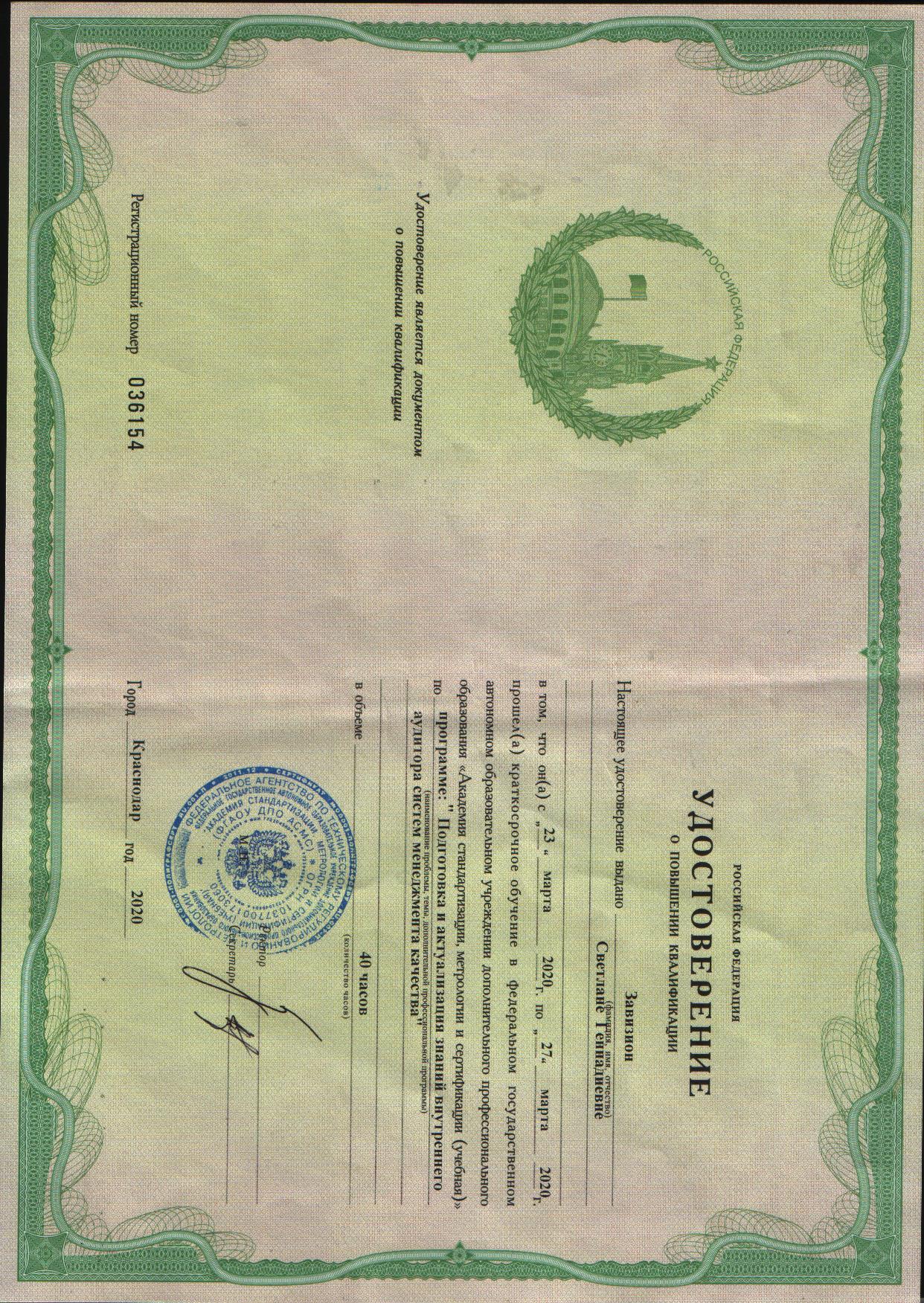 - «Подготовка и актуализация знаний внутреннего аудитора системы менеджмента качества»;